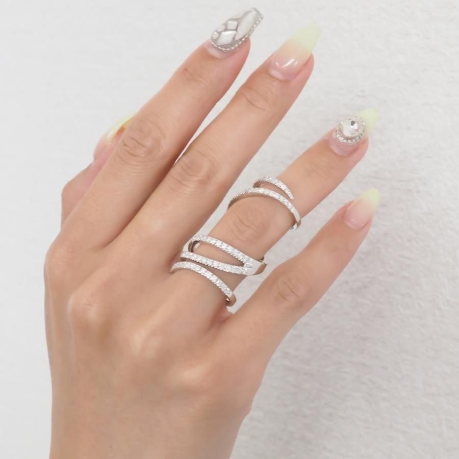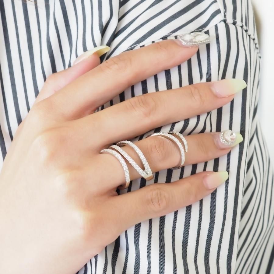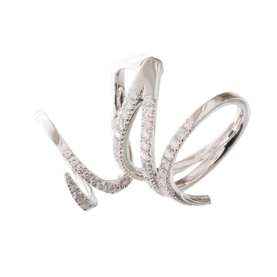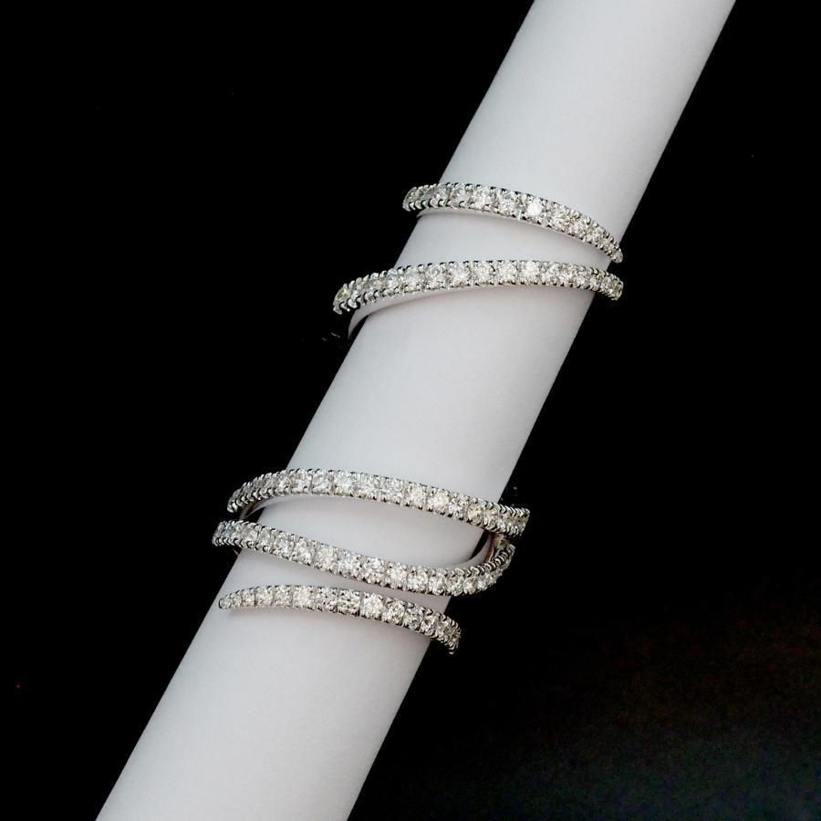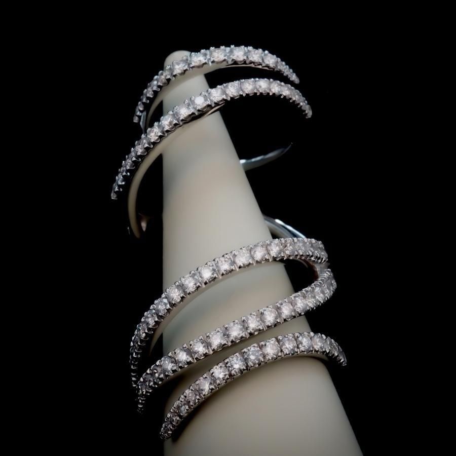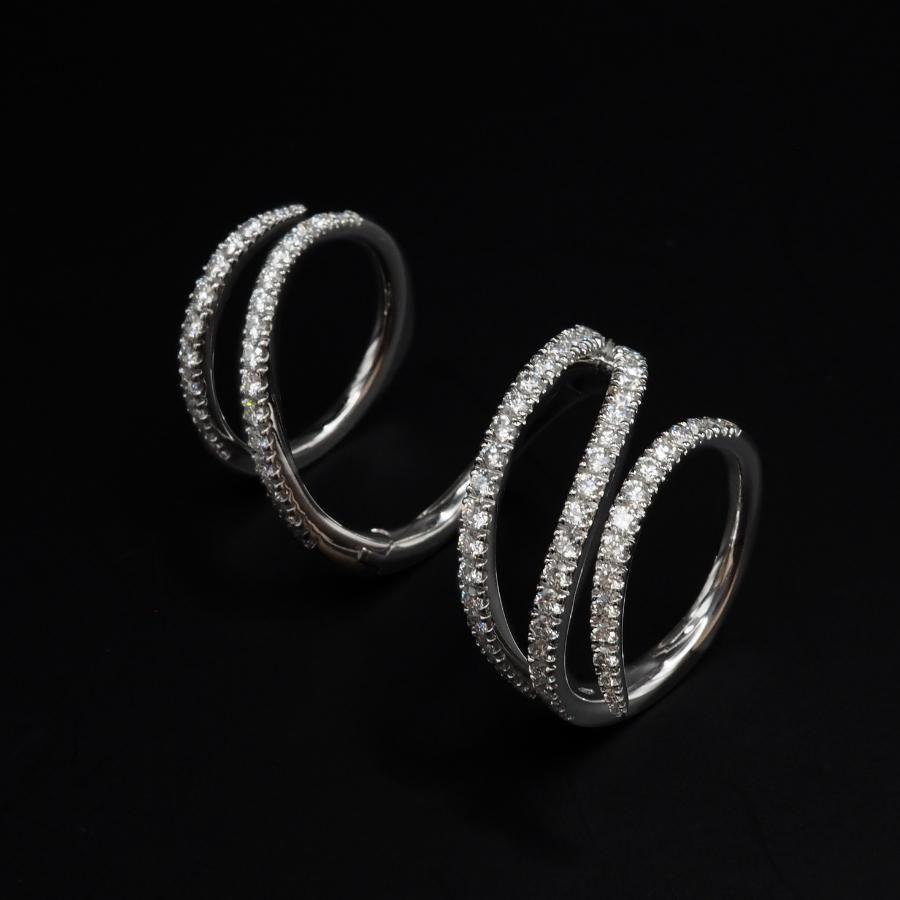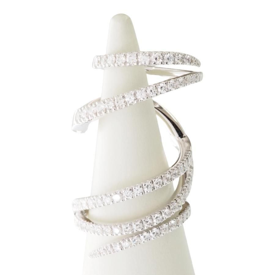 指に巻き付くような魅惑的なデザインリング 可動式になっているので指は自由に動きます。 高級感あふれる繊細なリングです。 K18WG ダイヤモンド総カラット数:1.50ct ダイヤモンド鑑別書付