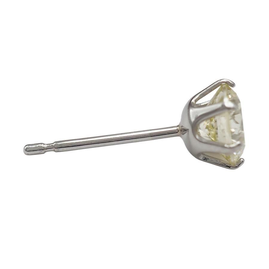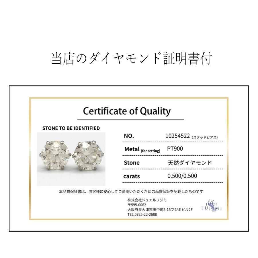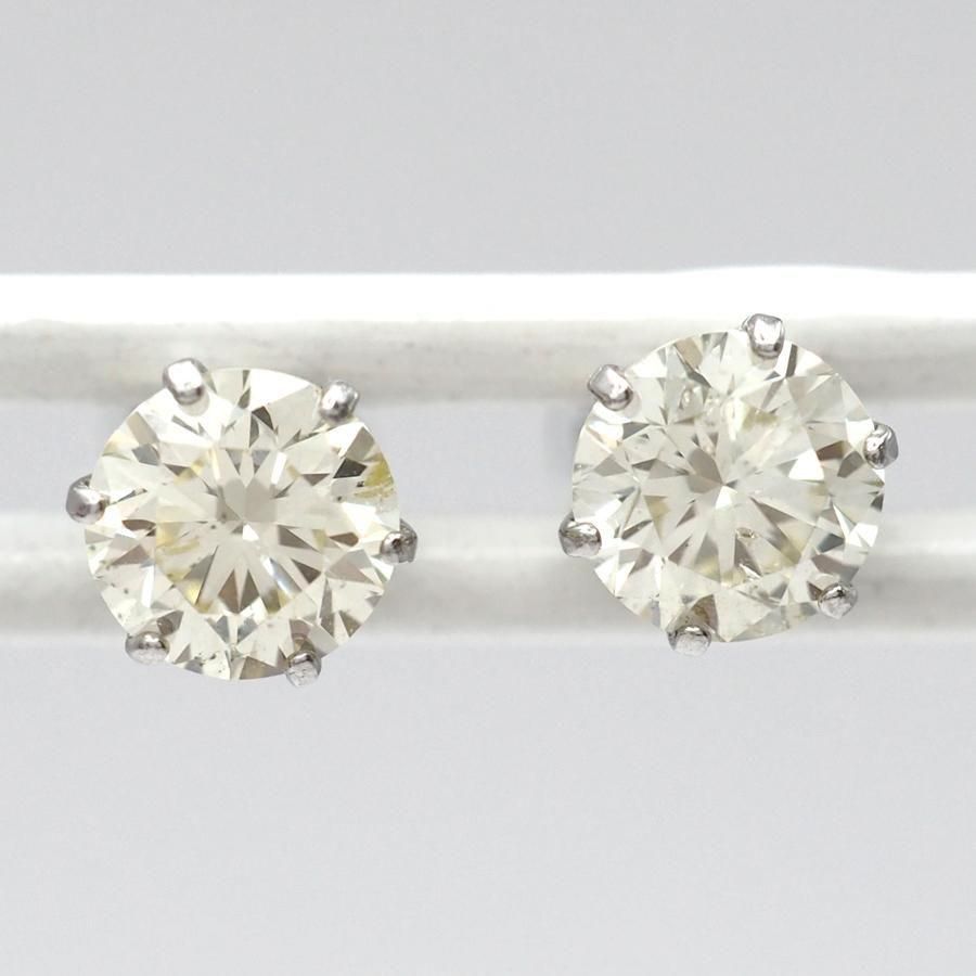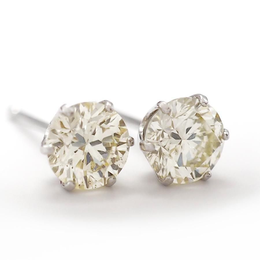ダイヤモンド片耳0.5ct、合計1ctのスタッドピアス。 天然ダイヤモンドの魅力を存分にお楽しみいただけるピアスです。カラーは少し薄いイエローがかっていますがダイヤモンド特有のテリ艶感があり、美しく煌めきます。画像は拡大していますので、インクルージョン(内包物)が見て取れますが、耳につけると気にならない程度。ひとつは持っておきたいダイヤモンドピアスです。